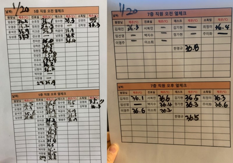 2021년 1월 18일 ~ 2021년 1월 23일 직원 열체크