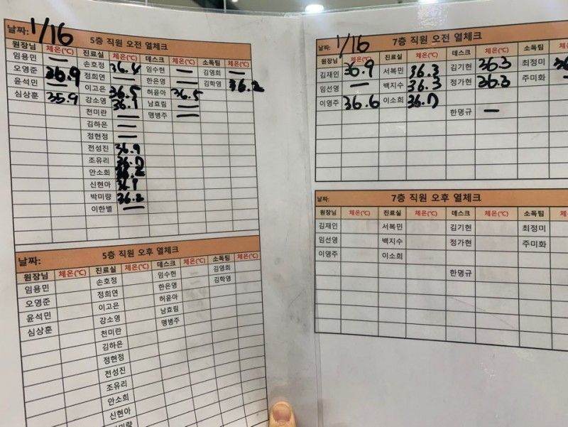 2021년 1월 11일 ~ 2021년 1월 16일 직원 열체크