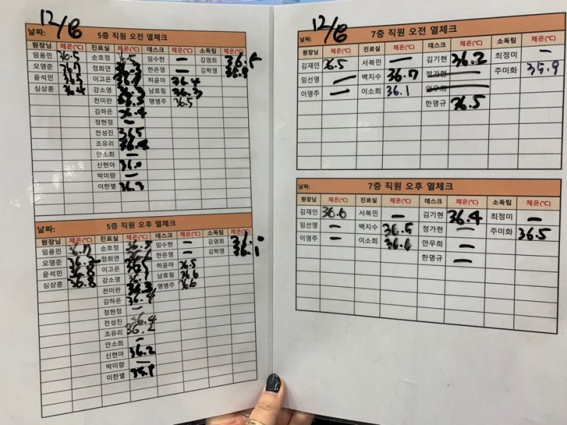 2020.12.07 ~ 2020.12.12 직원 열체크 내용입니다^^