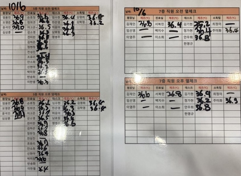 2020.10.05~2020.10.10 직원 열체크 내용입니다^^