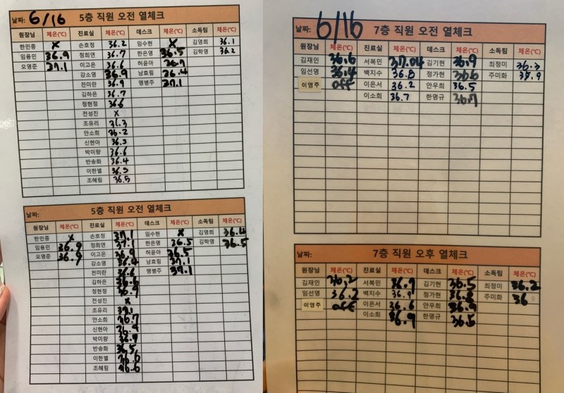 오전/오후 열체크 진행하였으며 특이사항은 없었습니다^^